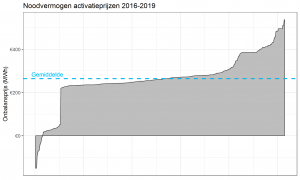 De regel voor prijssetting van noodvermogen is dat er minimaal 200 euro plus APX per MWh voor opregelen wordt uitbetaald. Een lagere prijs per uur betekent dat er teveel noodvermogen is ingeroepen. Het systeem gaat dan long in plaats van short, waardoor de afregelprijs geldig wordt en eventueel zelfs negatieve prijzen. De gemiddelde opregelprijs komt uit op 263 euro per MWh met uitschieters tot boven de 500 euro. Er is geen duidelijke trend zichtbaar in de prijsontwikkeling van noodvermogen.